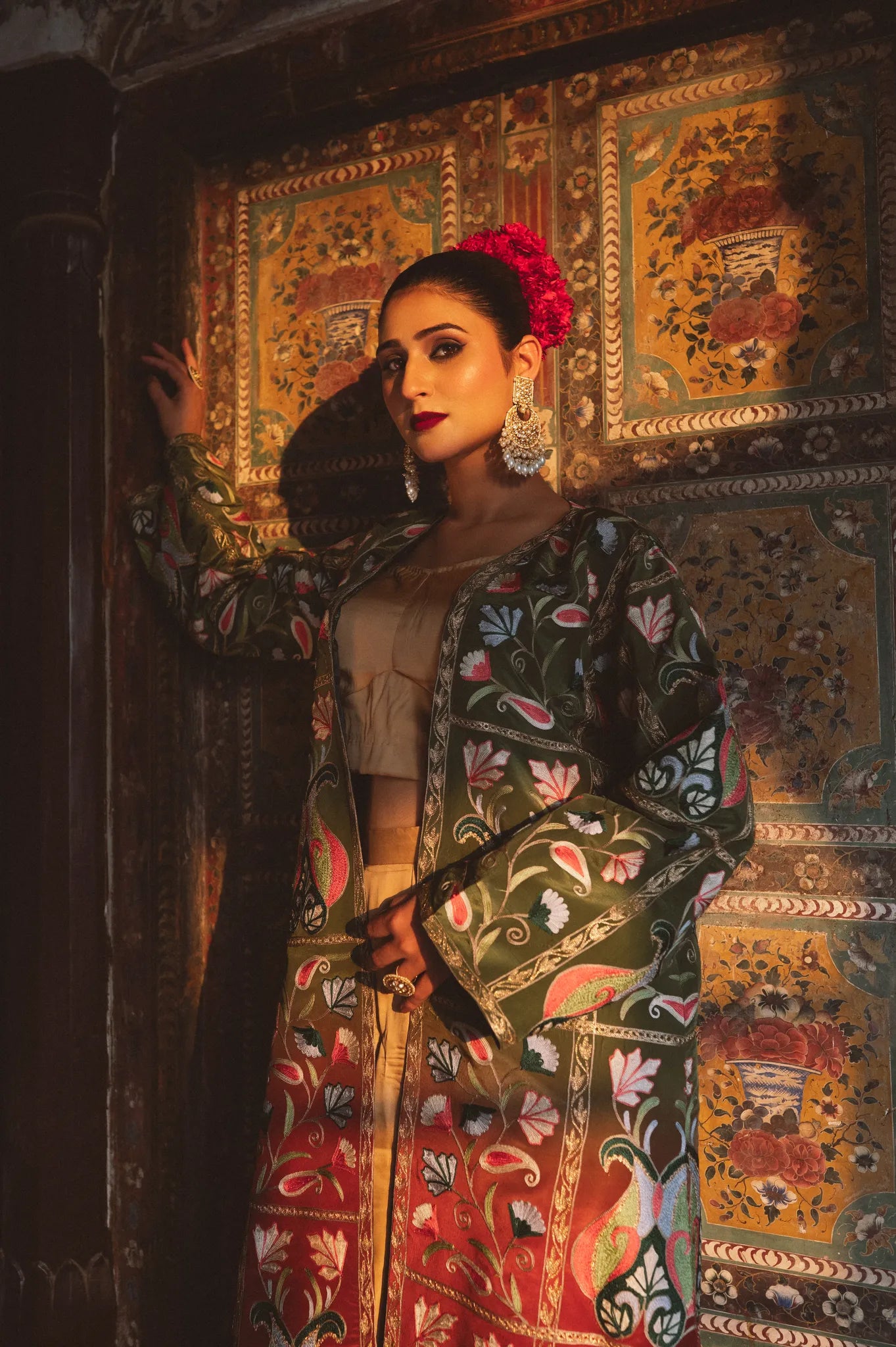 - Base Colour of Jacket: Green & Rust / Ombre Blue & Green