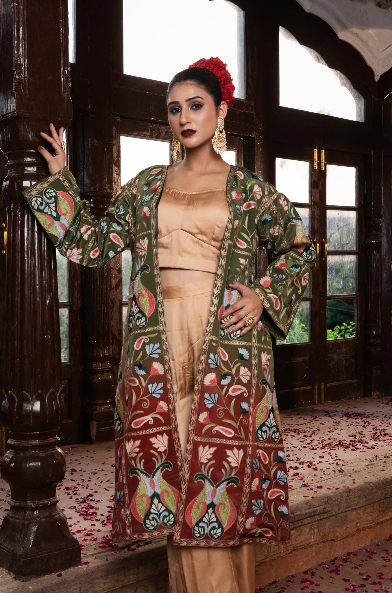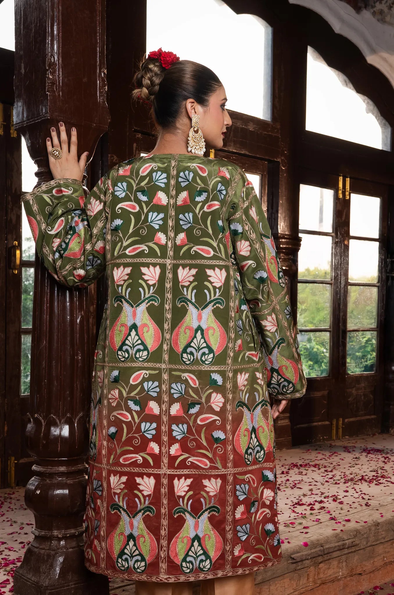 The coat is beautiful! Very nice quality. Tailoring is perfect (shows experience and thoughtfulness), the aari work is exactly as shown, and the seller is a joy to communicate with. Will be ordering again.
