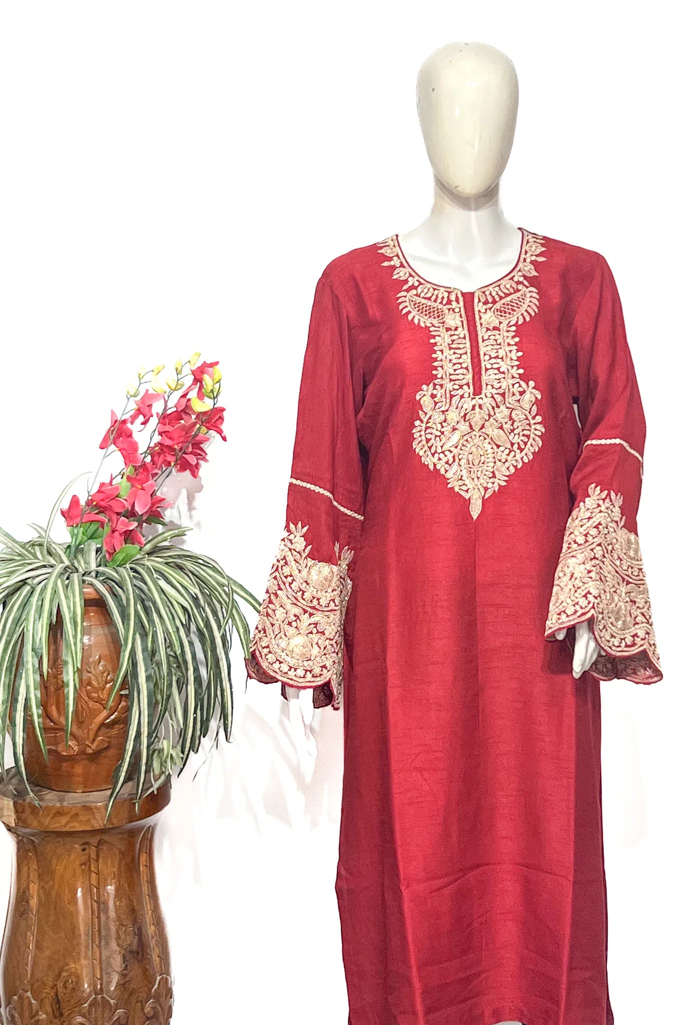For the moments you want to embody heritage with effortless grace — Jahanara transforms tradition into power and beauty. Crafted in luxurious viscose raw silk, this kurta is brought to life with intricate Kashmiri puff tilla embroidery that feels regal, timeless, and deeply rooted in culture.