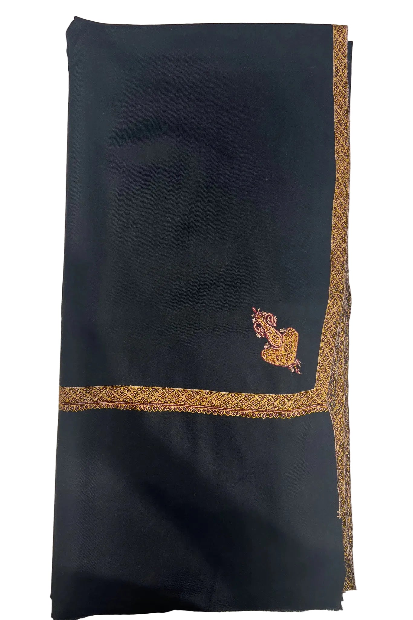 When worn, it feels composed and reassuring. The tight weave holds warmth close without weight, allowing the shawl to rest naturally over the shoulders. The floral sozni work appears sparingly, almost private, revealing itself only when you move. It carries the mood of late dinners, low voices, and familiar company. There is confidence here that does not need expression, only presence.
