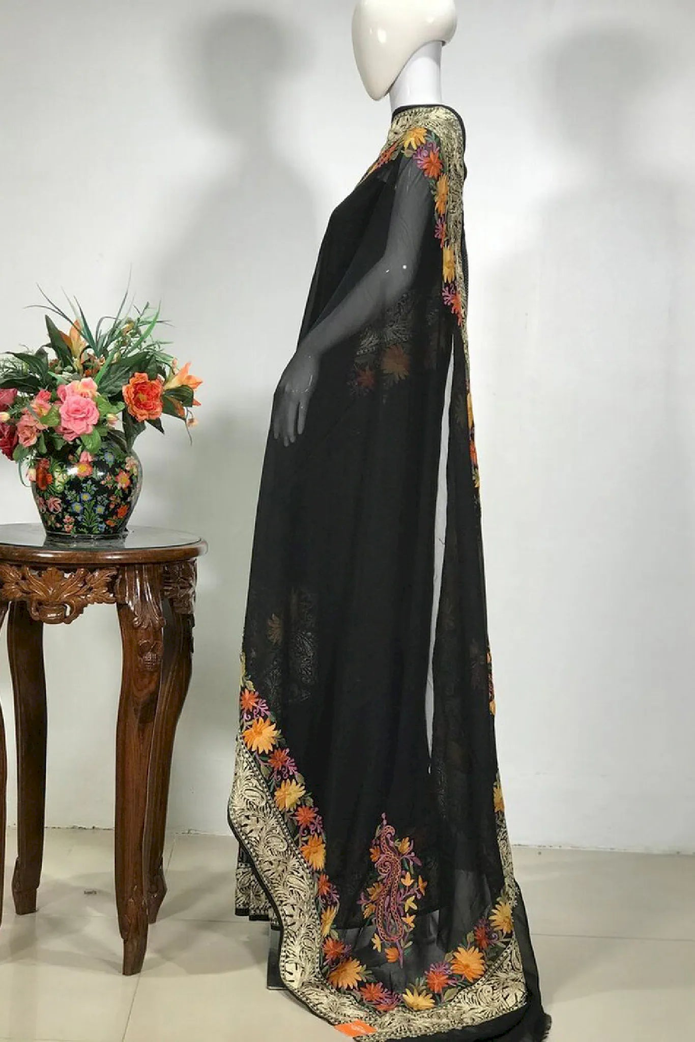 Worn with calm poise, Zulf brings bold charm and cultural soul. Soft saree drapes with smooth flow, allowing aari and tilla art to glow across dark fabric. Light to carry and rich in art, this form suits long hours and various plans with natural fluidity. Zulf holds Kashmiri tradition in a form that stays striking, graceful, and timeless.