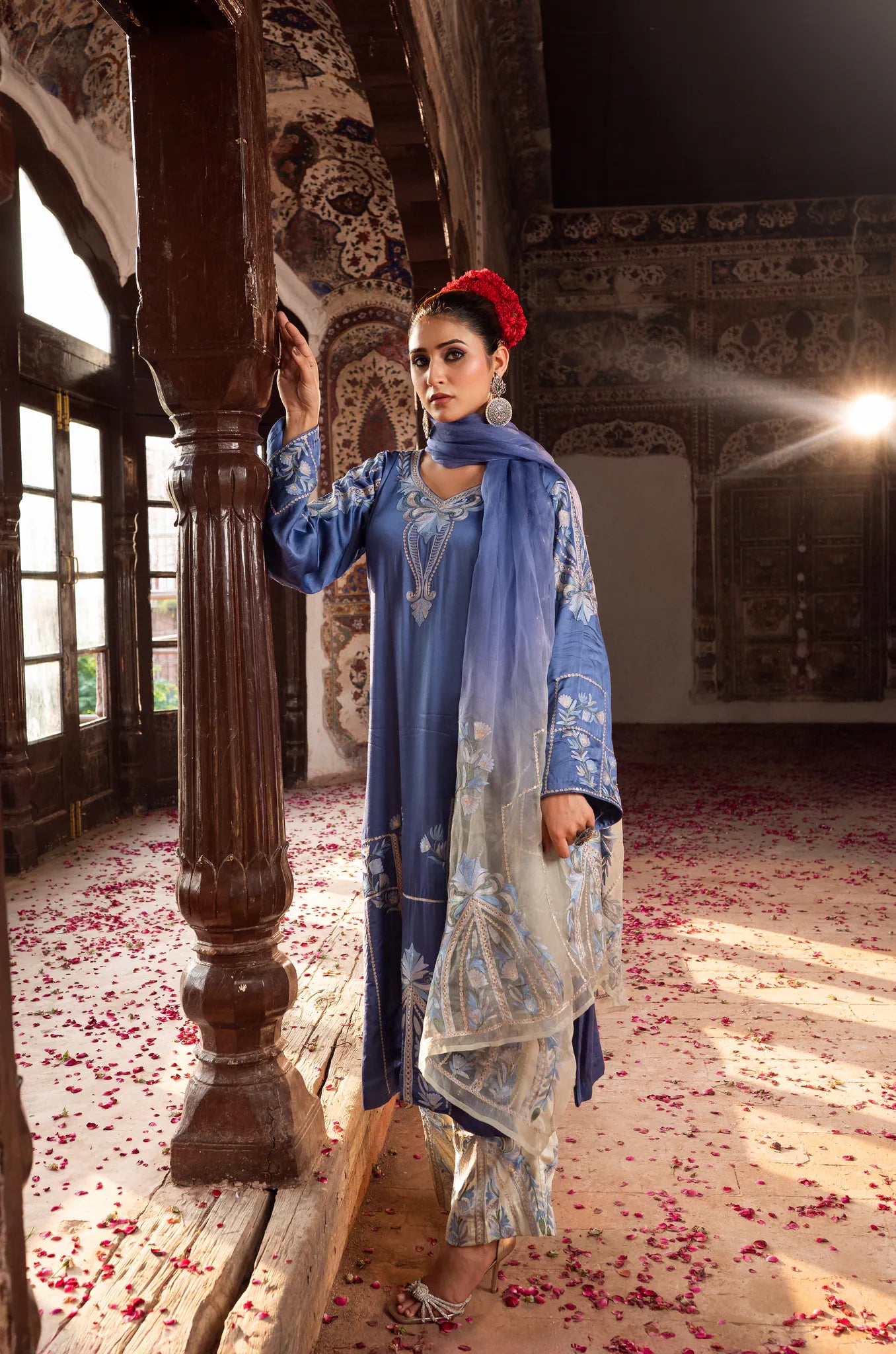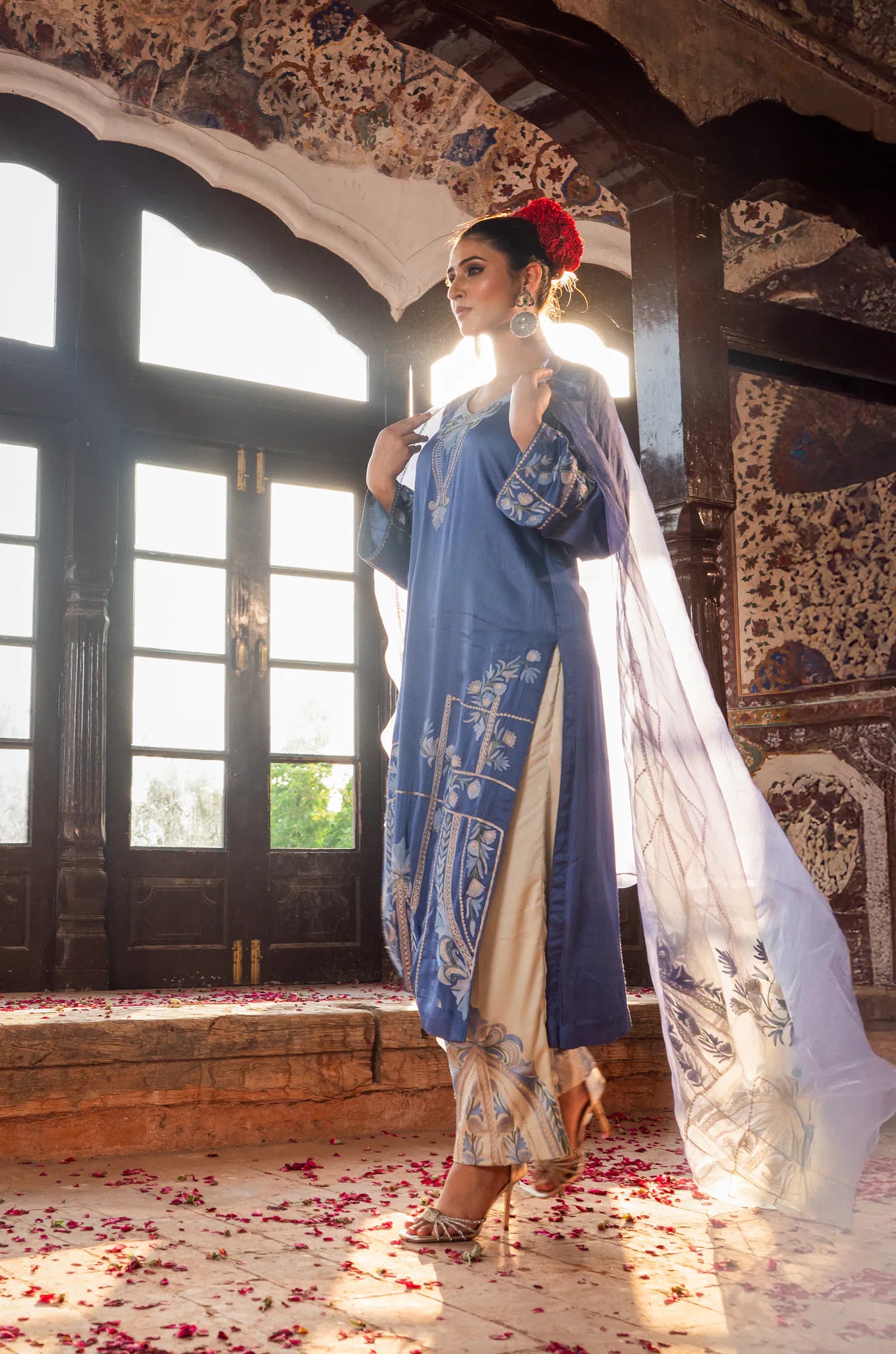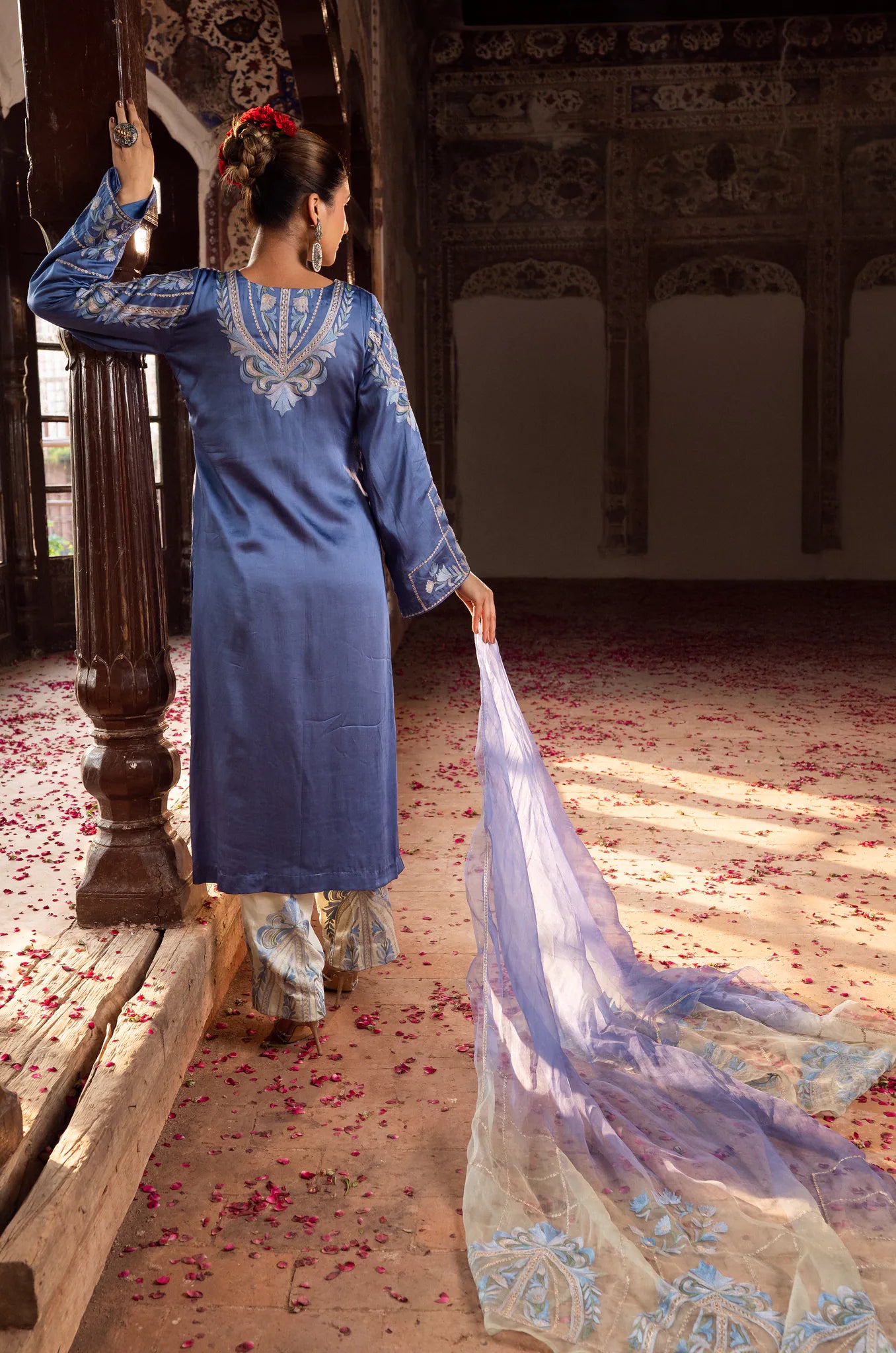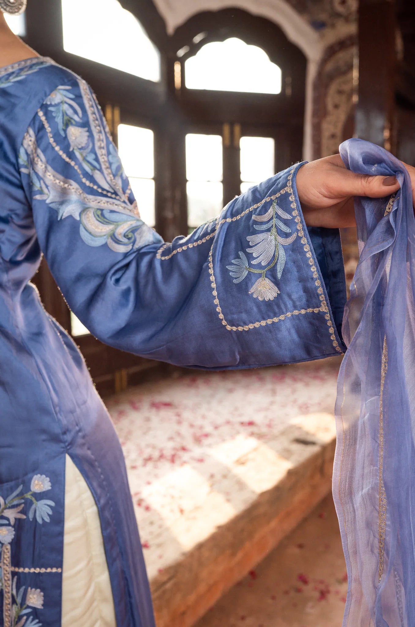 Inspiration: Inspired by the tranquil expanse of the sky at dawn, Neelgun from the Firdausé collection is an ode to serenity & refined aesthetics.