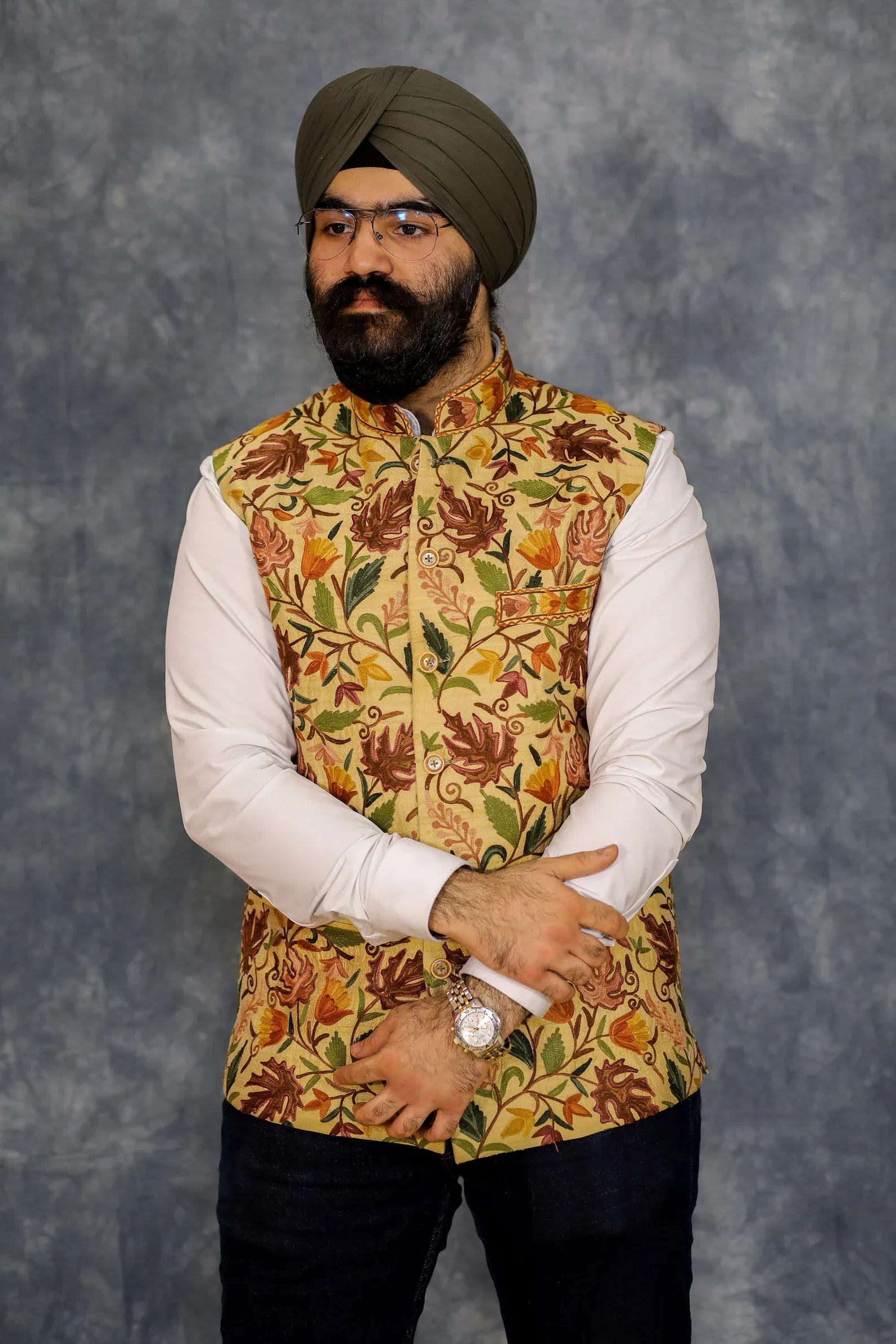 - Azran - Kashmiri Aari embroidered Nehru Jacket