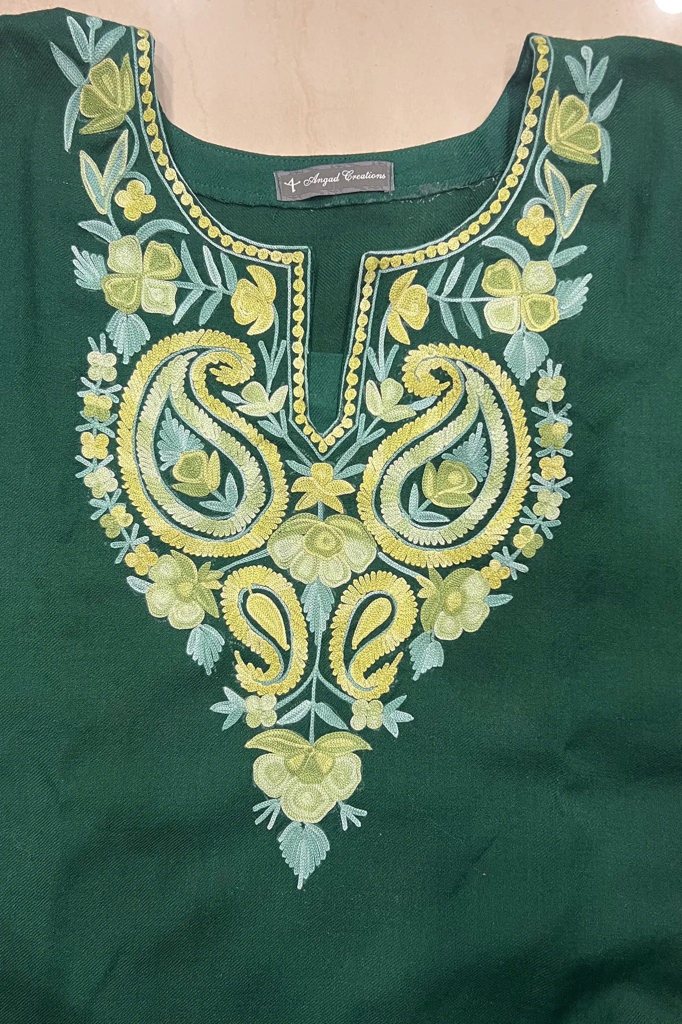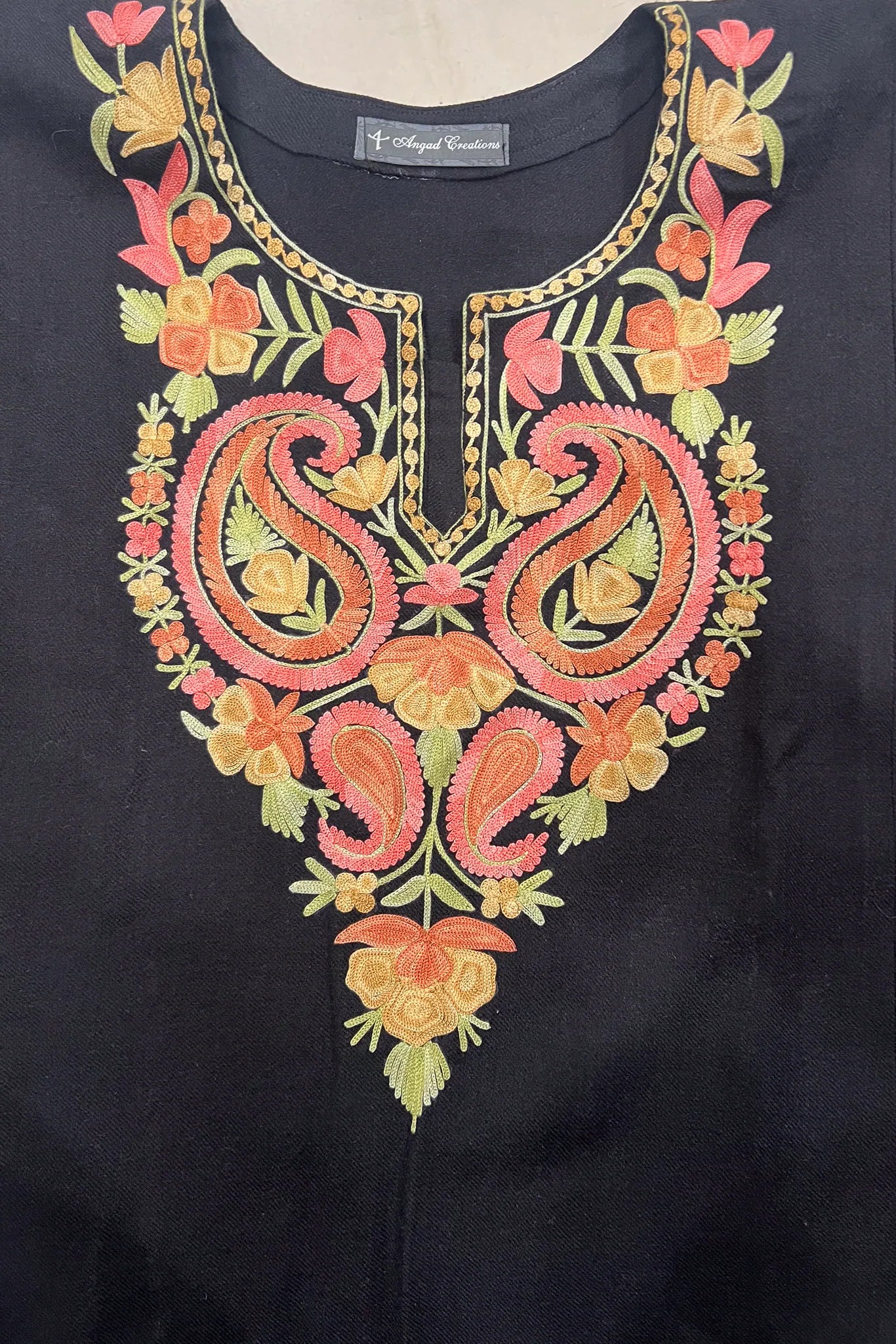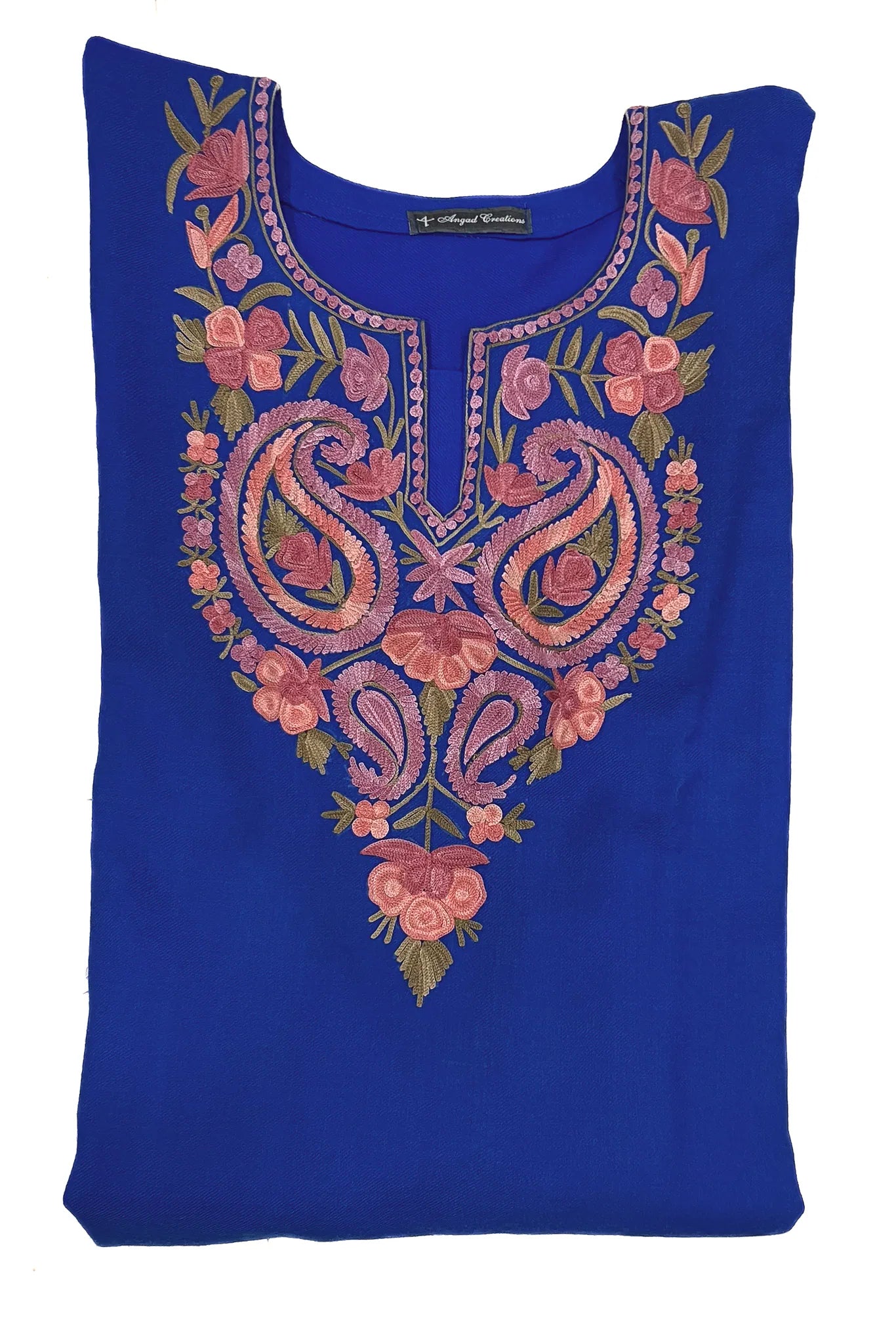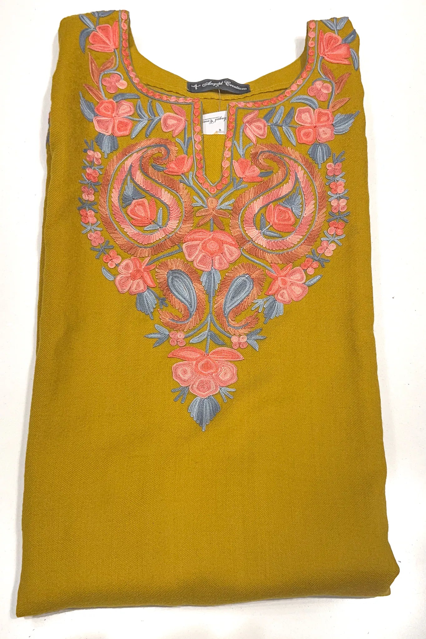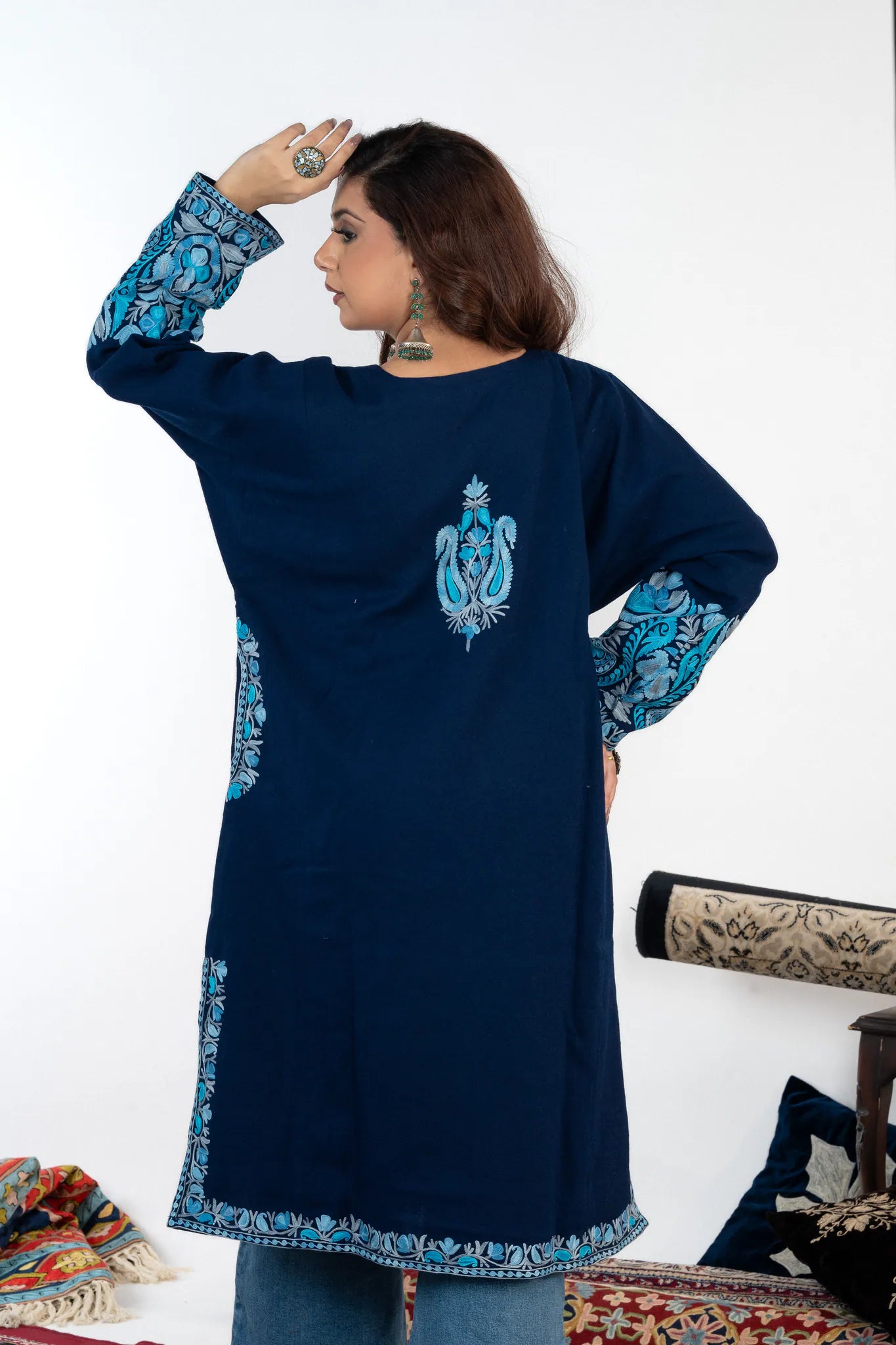 Stay cozy and graceful in our “Gulnaar” woollen Kashmiri phiran, adorned with intricate aari embroidery. Available in classic navy, regal wine, and earthy olive green, this phiran blends timeless Kashmiri artistry with everyday warmth.