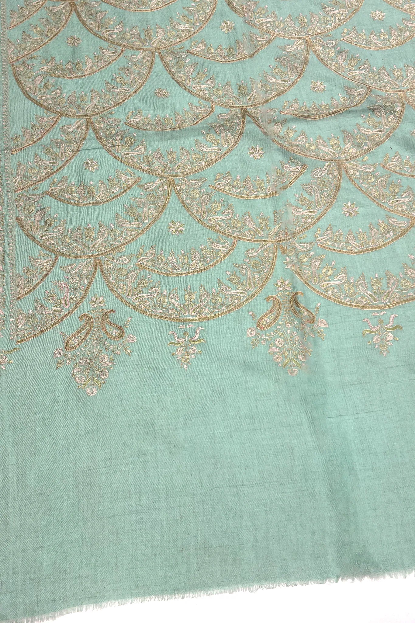 - Mint Green Pure Pashmina Sozni Jamawar Shawl