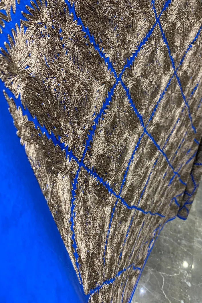 - For Weddings & Grand Celebrations : Pair with antique gold or champagne-tone jewellery to echo the subtle fawn embroidery. Choose a statement necklace or jhumkas to elevate the royal blue backdrop. Complete the look with gold heels or embroidered juttis for regal charm.