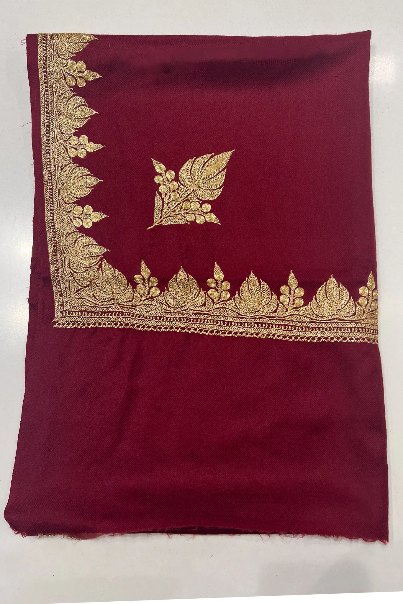 - Pure Wool Tilla Hand Embrodiery Chinar Border Stole