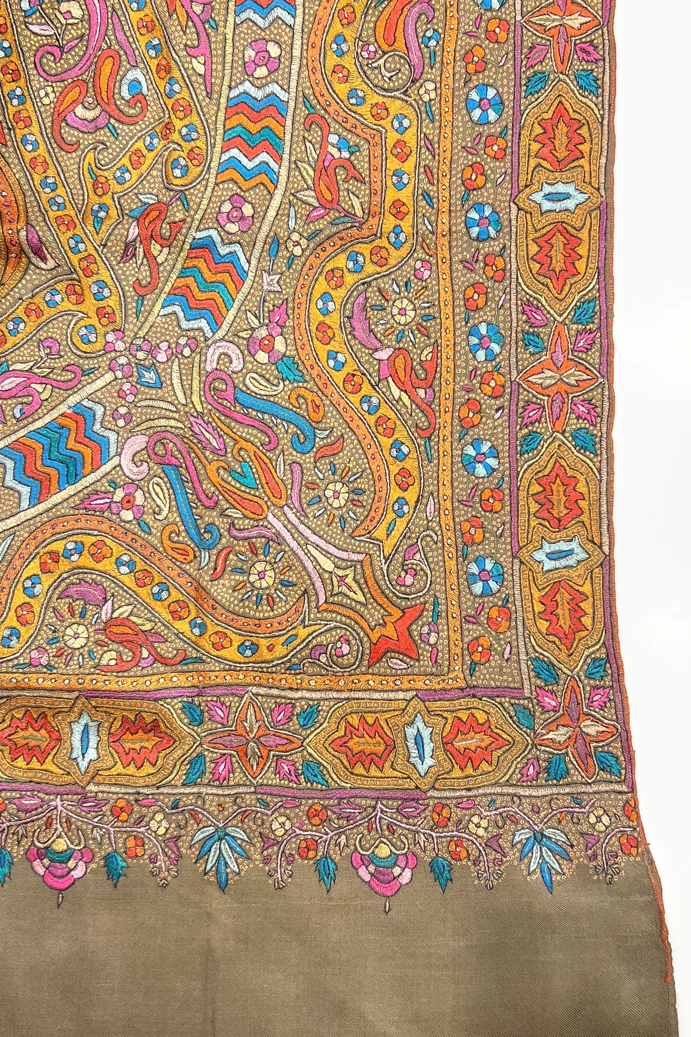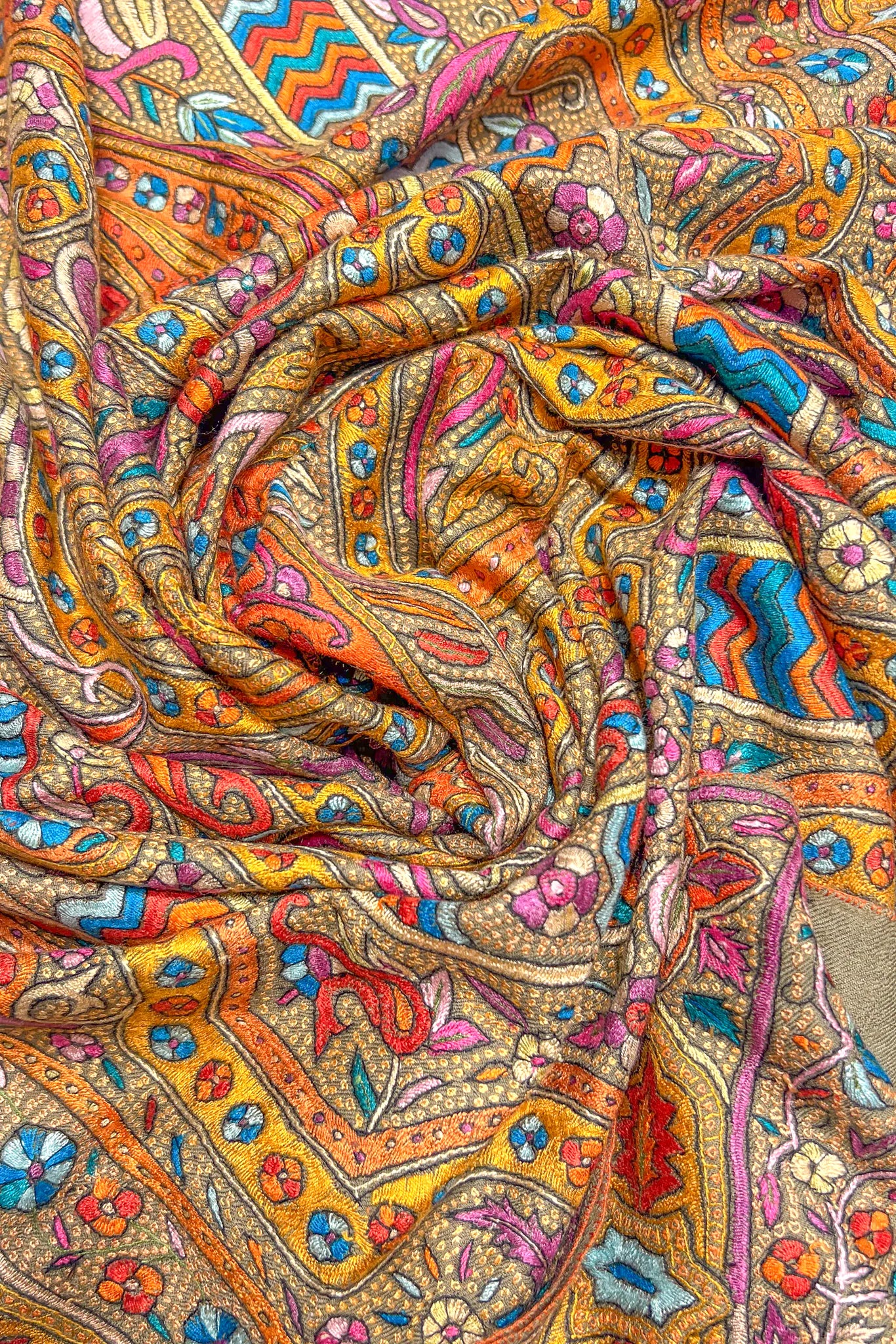 Natural Pure Pashmina Shawl with All Over Papier Mache Hand Embroidery