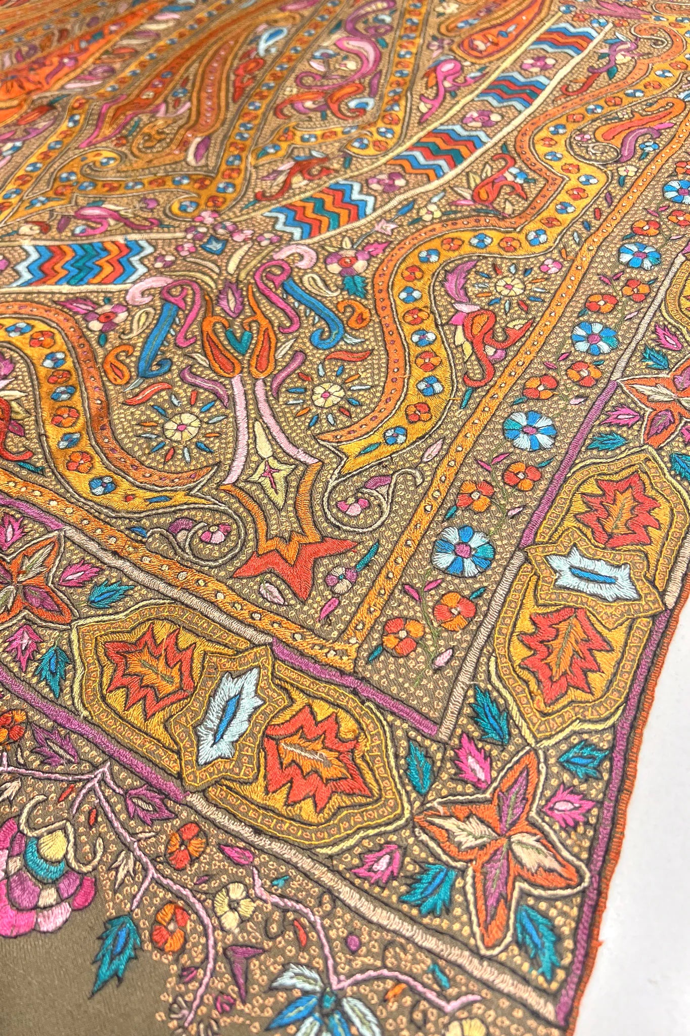 - Natural Pure Pashmina Shawl with All Over Papier Mache Hand Embroidery