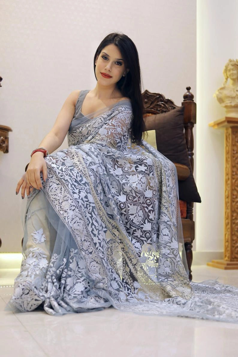- Embroidery: Kashmiri Aari & Tilla Fusion