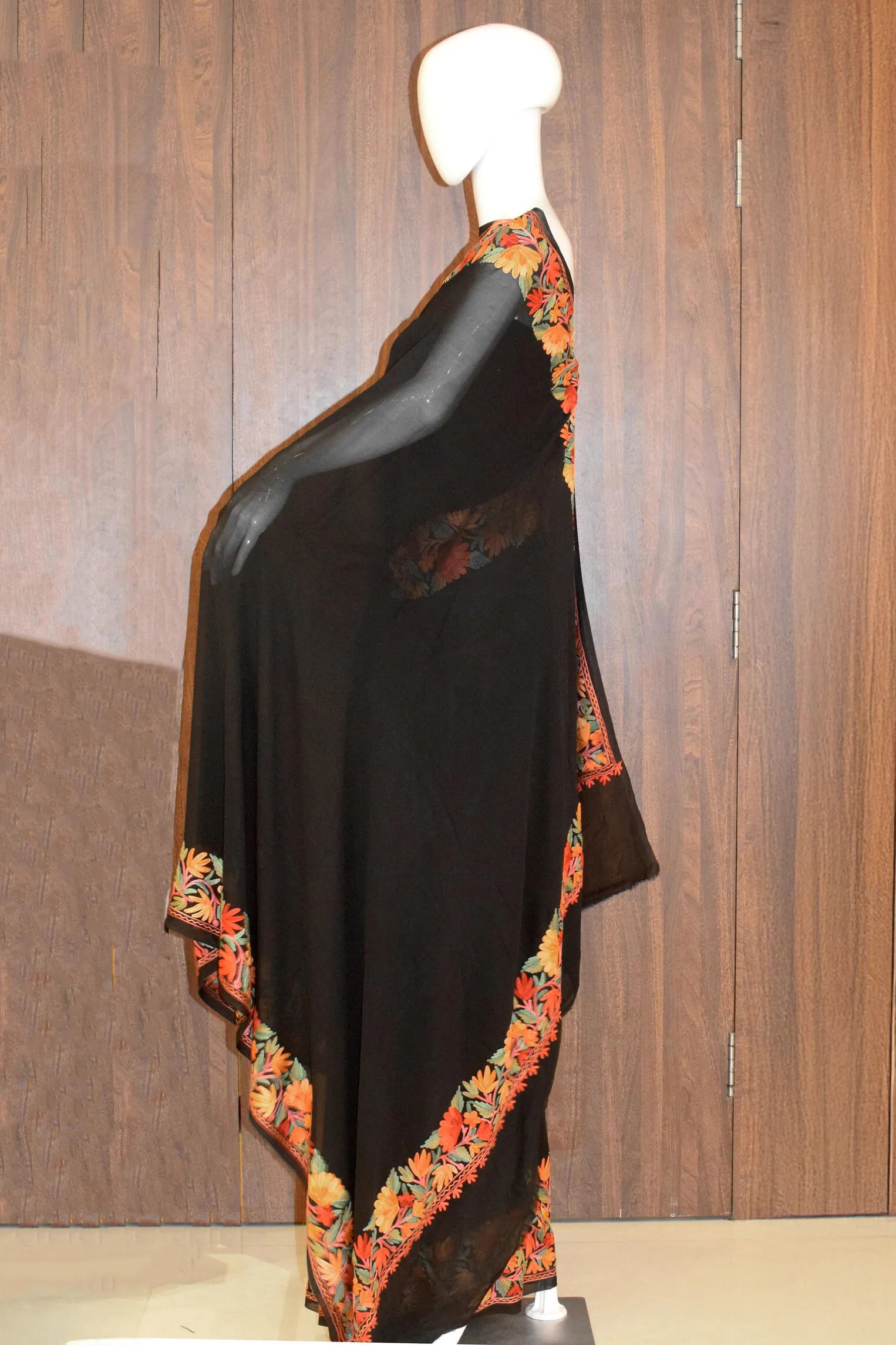 Draping this saree feels like carrying a piece of living heritage—elegant, empowered, and wrapped in the artistry of Kashmir. The soft, flowing Viscose Georgette moves with graceful ease, while the vibrant multi-colour Aari embroidery blooms across the black canvas with joyful depth. Perfect for festive celebrations, cultural gatherings, and meaningful family occasions, this saree blends comfort, craftsmanship, and timeless beauty. Paired with Indian Crepe blouse fabric, it becomes a garment that celebrates both tradition and self-expression.
