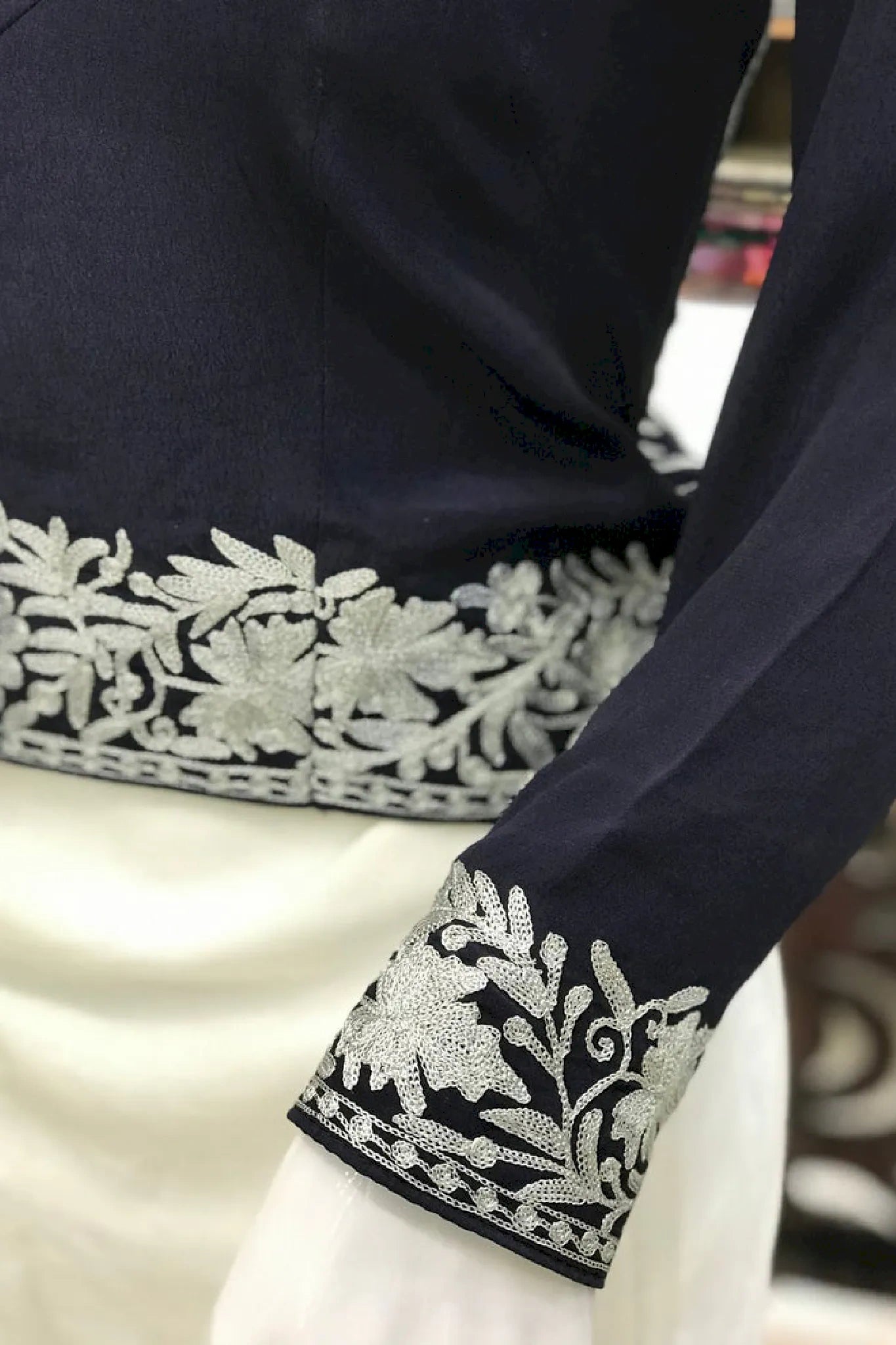 - Embroidery: Kashmiri Aari & Tilla Fusion