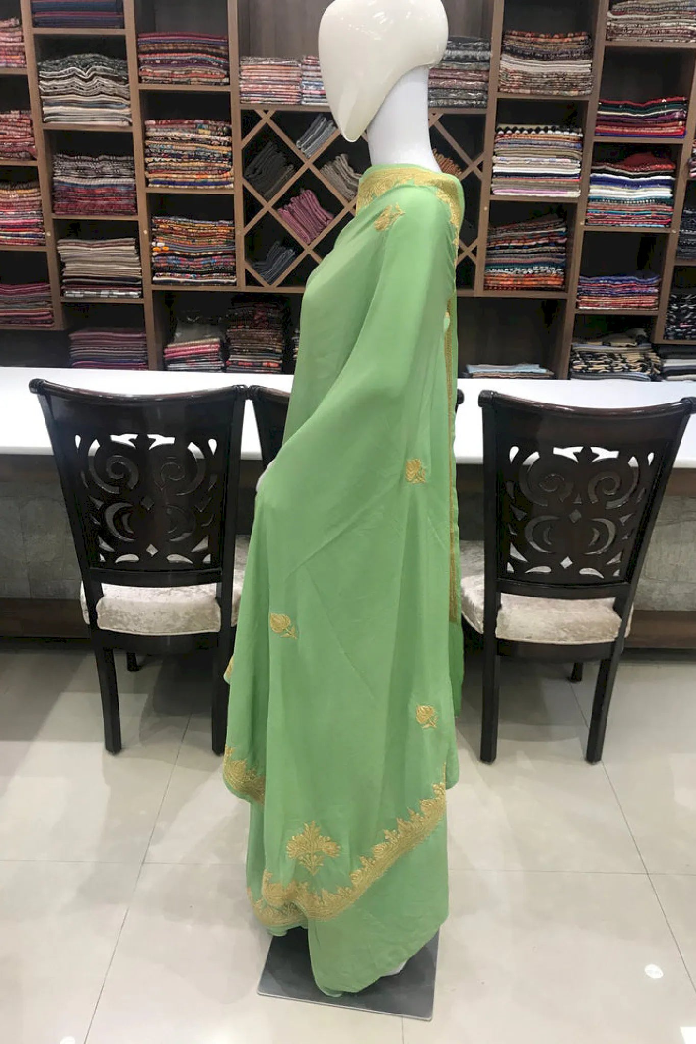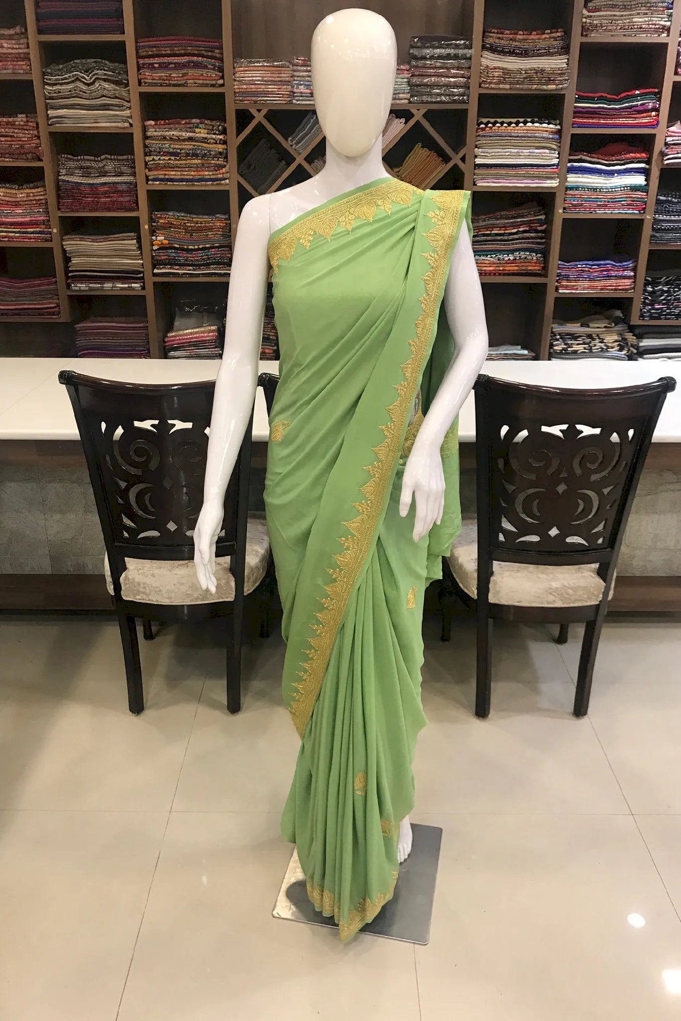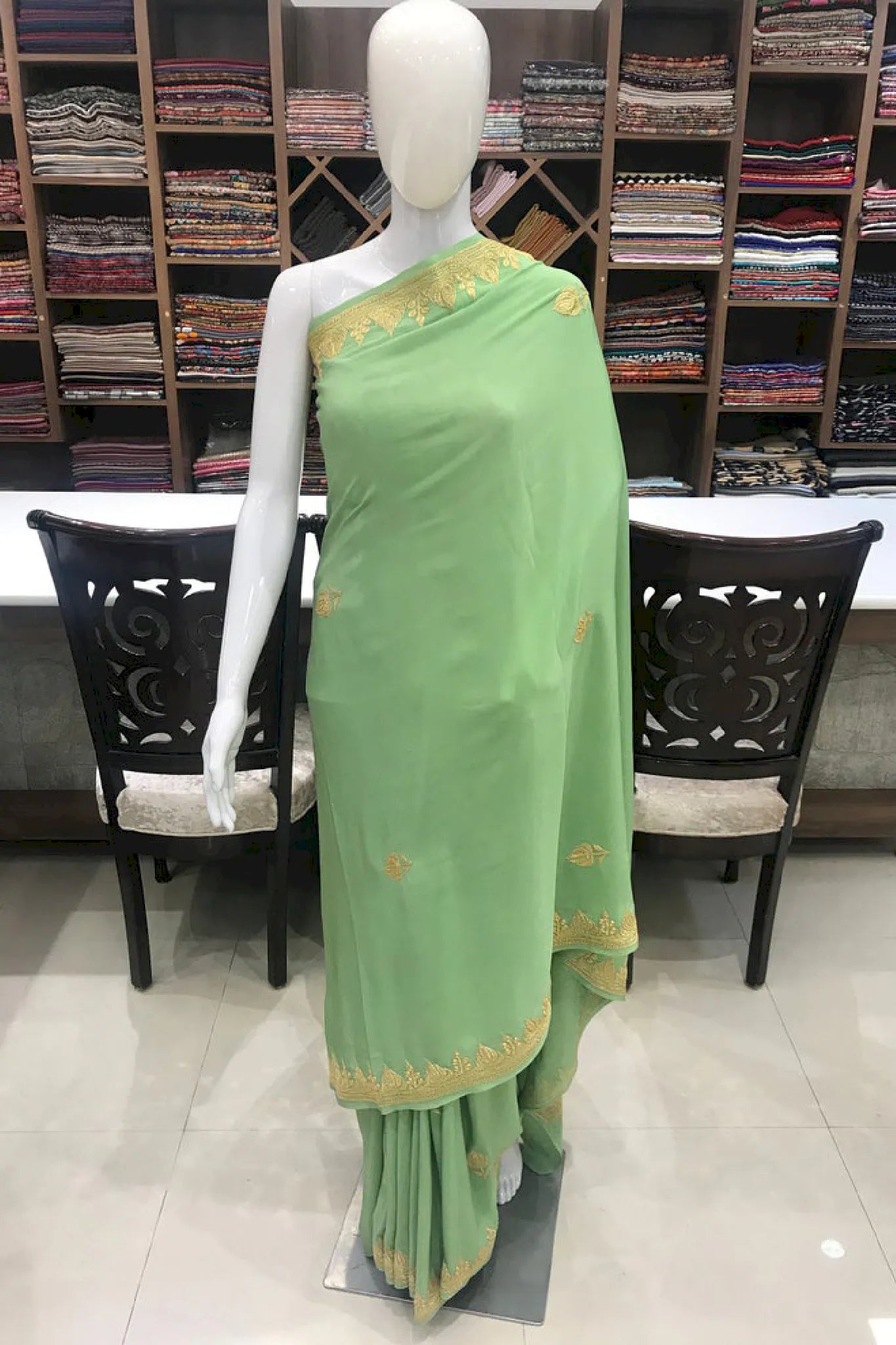 Worn with natural poise and soft authority, Ziya brings an aura of calm luxury and cultural closeness. Flowing in pure crepe, this sari sits light on skin, allowing smooth drape and lasting comfort through long rituals and social hours. Gold tilla hand craft form a classic border that honors artisanal skill with a polished, modern mood. Balanced in form and function, Ziya suits both ritual moments and social gatherings, finishing with a matching pure crepe blouse for a fully harmonious look.